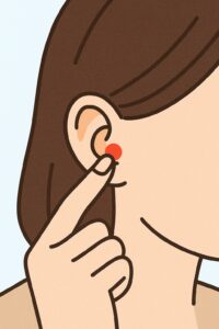 耳の穴の横にある丸いポコっとした部分=耳珠(じじゅ)の“下側のカーブ”にあります。