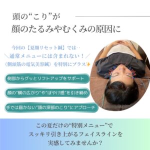 通常メニューにはない「側頭筋の電気美容鍼」付きの特別ケア!